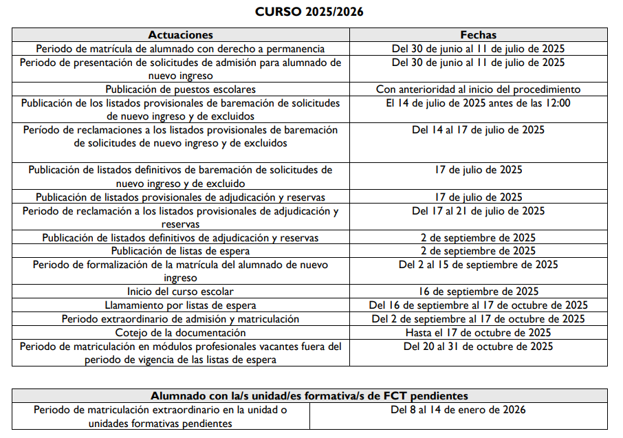 Admisión y Matriculación Curso 2025/2026