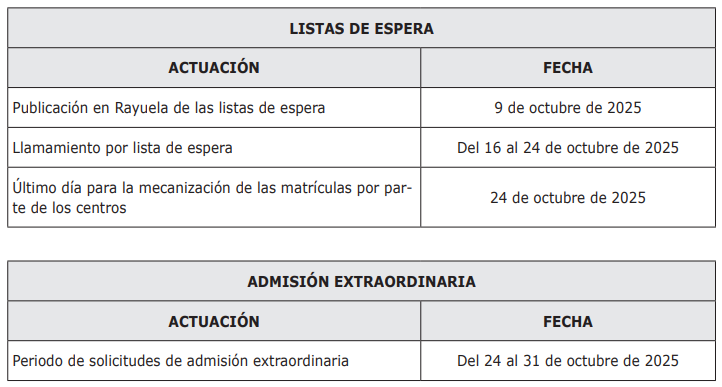 - No obstante, a partir de la fecha que indica el calendario de actuaciones, podrán incorporarse al final de estas listas de espera las personas interesadas que no hayan presentado la solicitud dentro de los plazos previstos.